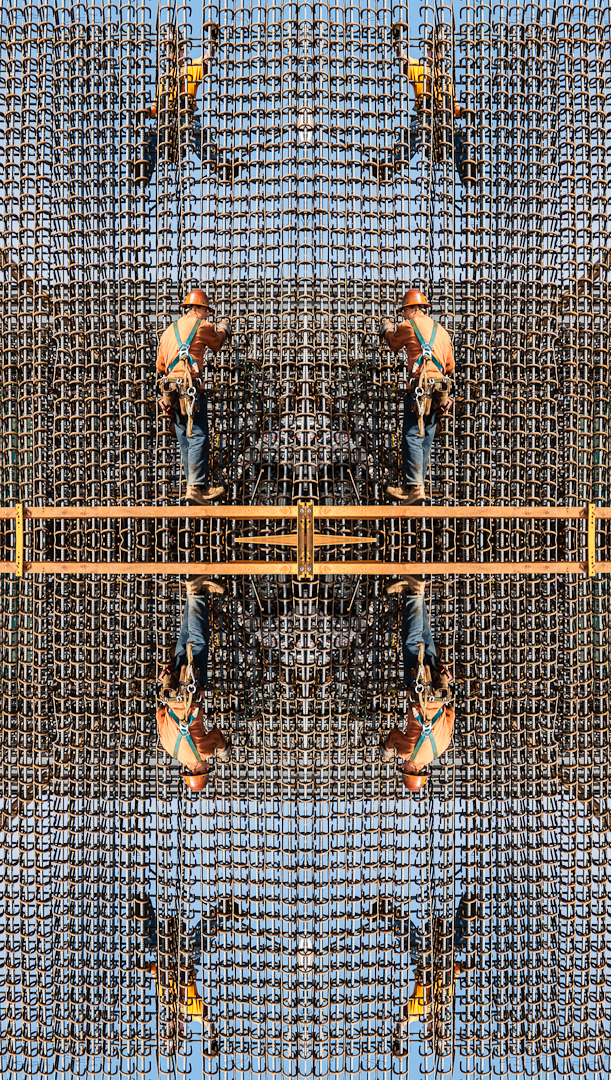 Hardhat weavers. Photo of ReBar riggers on building construction site, San Francisco, California.