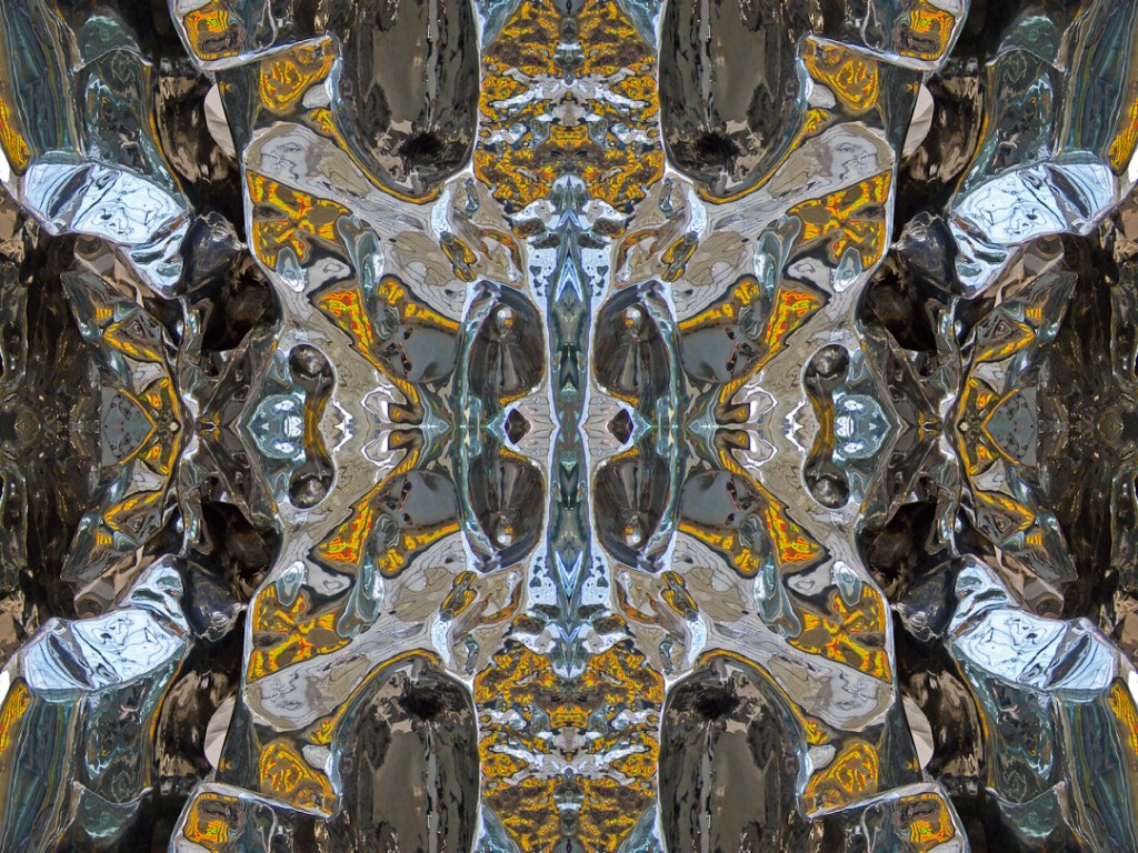 Reflections of reality: variation 1. Photo of part of “Artificial Rock #85” sculpture by Zhan Wang at Museum of Fine Arts, Boston, Massachusetts.