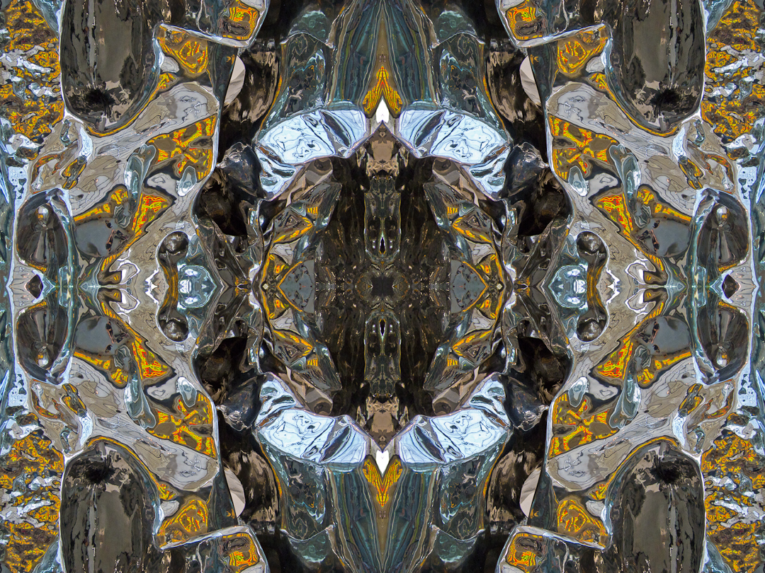 Reflections of reality: variation 4. Photo of part of “Artificial Rock #85” sculpture by Zhan Wang at Museum of Fine Arts, Boston, Massachusetts.