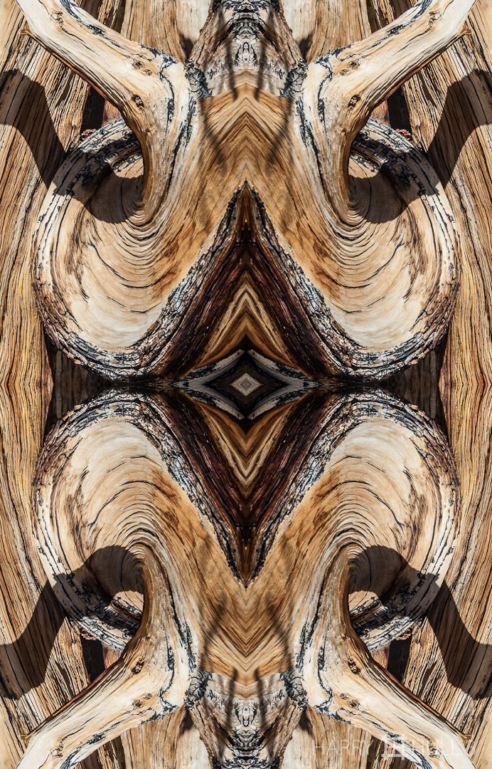 Bristlecone pine: ancient patterns, study 2. Photo of trunk of bristlecone pine, White Mountains National Forest, California.