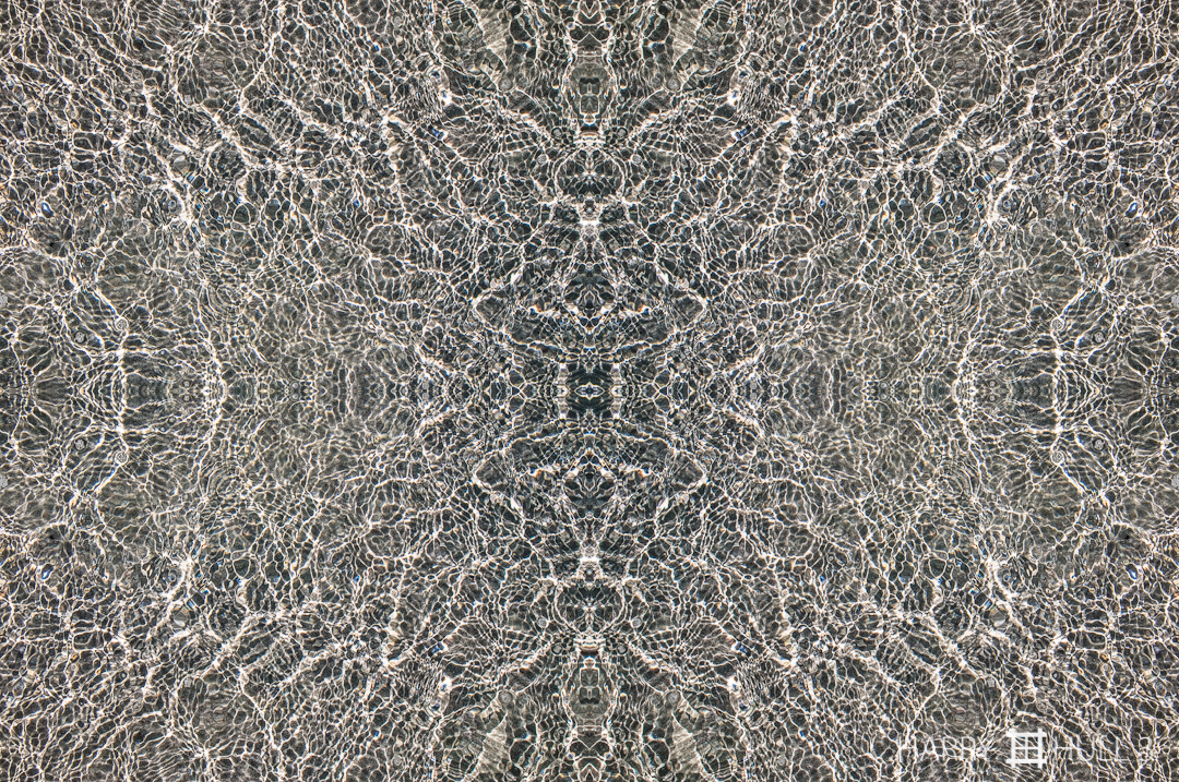 Water tracery. Photo of shallow water surface and light patterns on sand beneath, Playa Xcacel, Caribbean, Mexico.