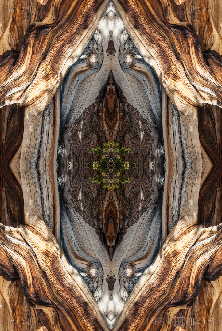 Bristlecone shrine. Photo of trunk and bark of bristlecone pine, White Mountains, Inyo National Forest, California.