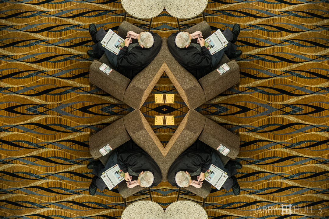 Beside himself. Photo of a man sitting in lounge area of the Northshore Mall, Peabody, Massachusetts.