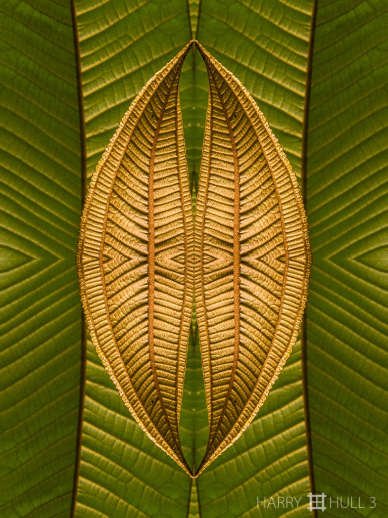 Leaf quilt. Photo of emerging and older melastome leaves, Finca Cantaros, San Vito, Costa Rica.