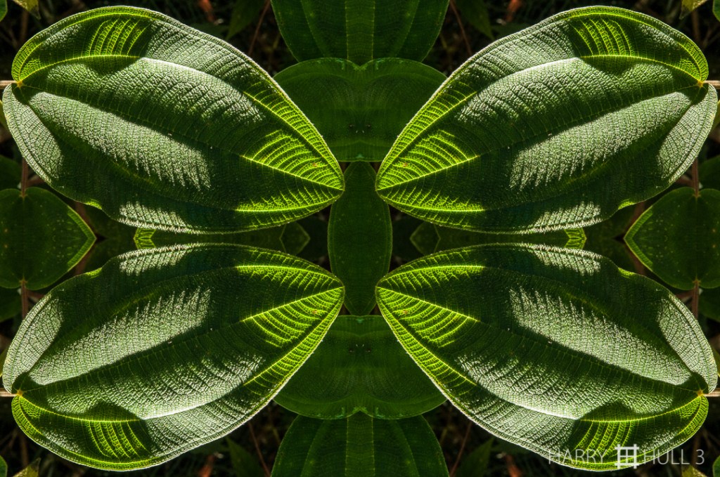 Leaf light: version 2. Photo of melastome leaves in early morning light, Finca Cantaros, San Vito, Costa Rica.