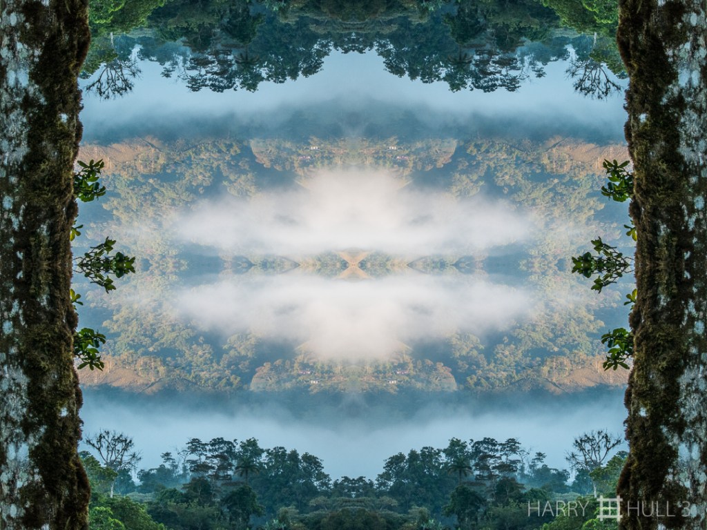 Storybook kingdom. Photo of hillside across the valley in early morning, Mirador, Finca Cantaros, San Vito, Costa Rica.