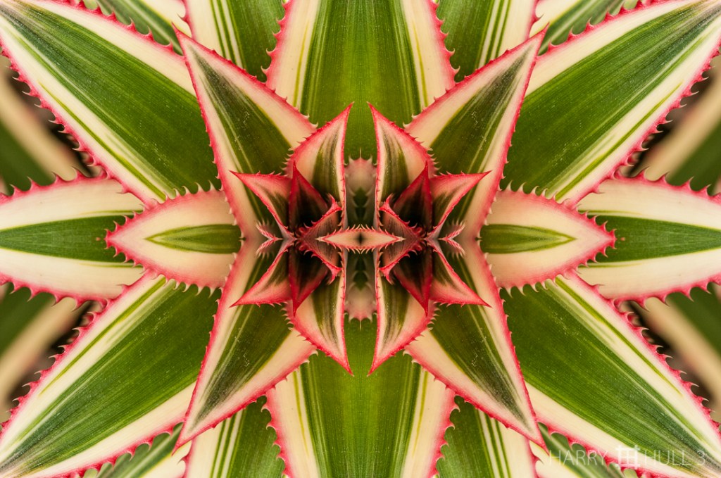 Barbed beauty: view 2. Photo of ornamental pineapple leaves (Ananas bracteatus “Tricolor”), Finca Cantaros, San Vito, Costa Rica.