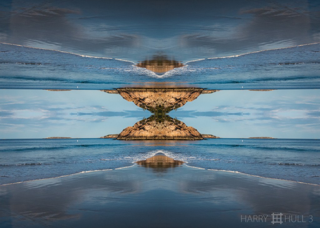 Island pivot: between the seas. Photo of small island off Singing Beach at low tide, Manchester, Massachusetts