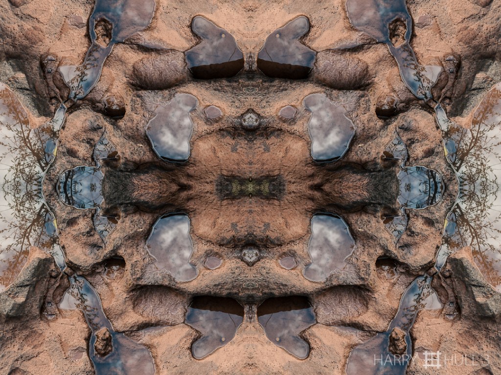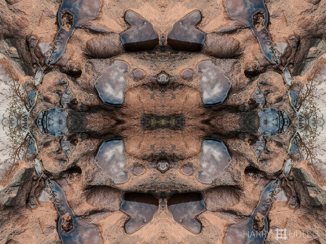 Sky puddles. Photo of rock and pools in the Iguazu River bed above Iguazu Falls, Argentina side.