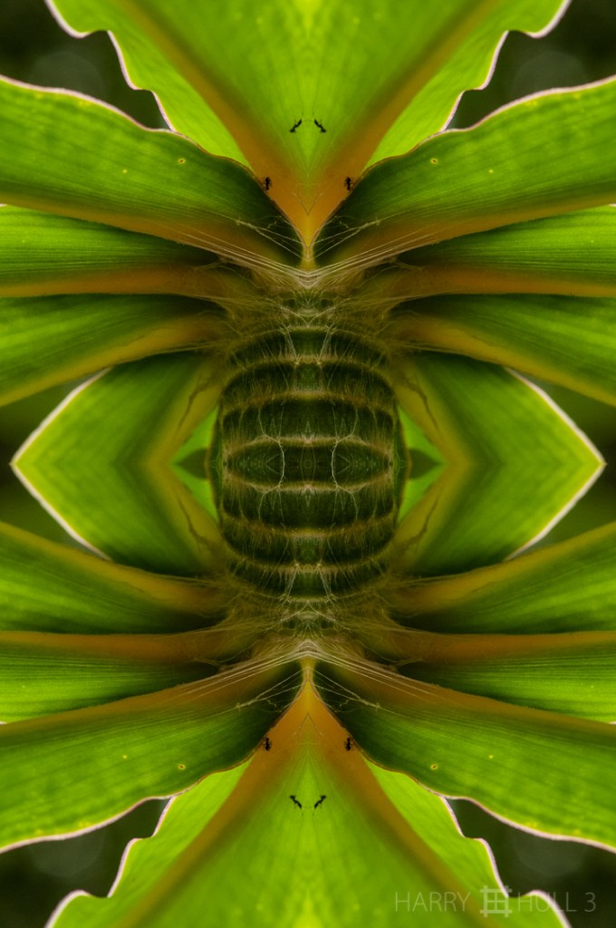 Botanical mechanics. Photo close-up of spiraling leaves of Costus plant, Finca Cantaros, San Vito, Costa Rica.