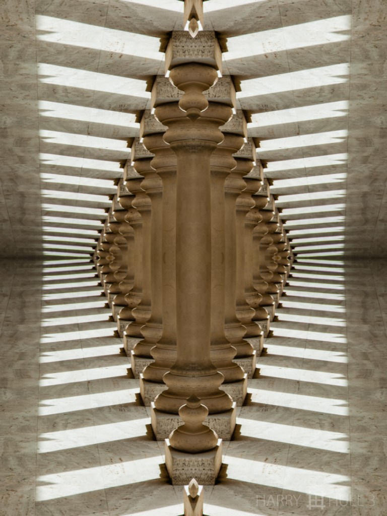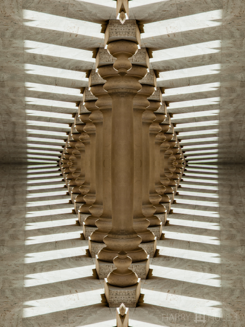 Column brigade. Photo of colonnade in entrance courtyard of the Legion of Honor, Fine Arts Museums of San Francisco, California.