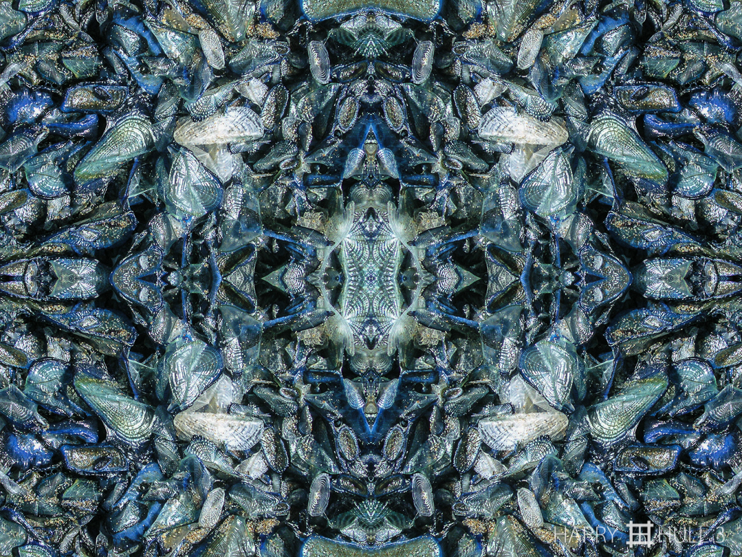 By-the-Wind Sailors on the beach. Photo of By-the-wind Sailors (Velella velella) washed ashore at Point Reyes National Seashore, California. Original photo by Gail H. Hull.