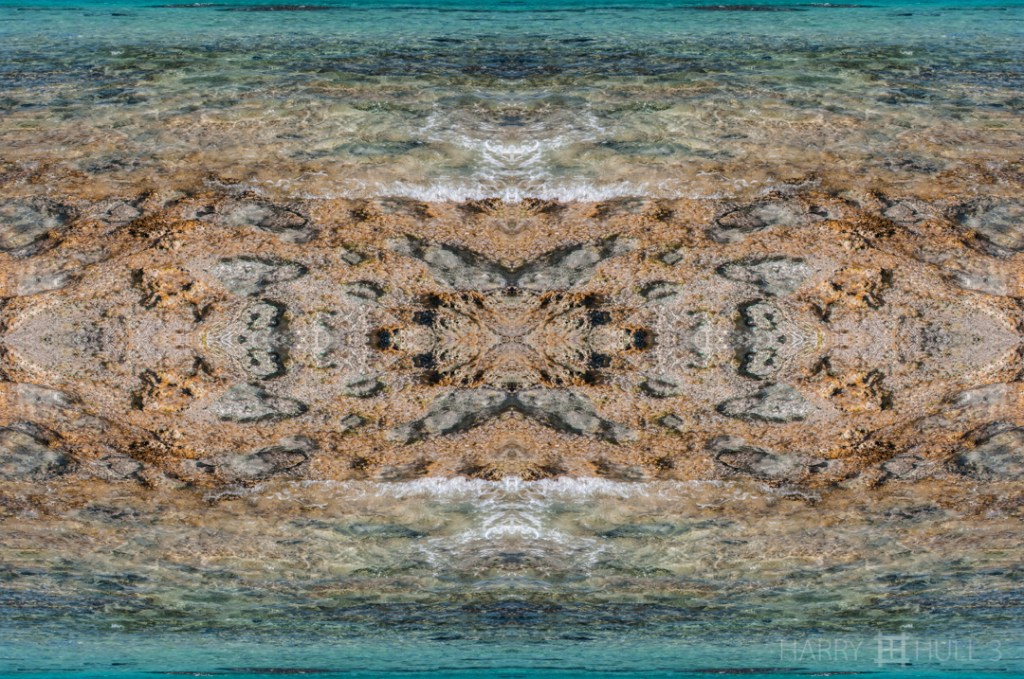 Reef revealed. Photo of limestone ledge close to shore at Playa Xcacel, Caribbean coast of Mexico.