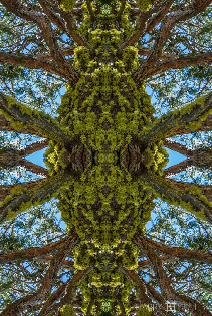“Bearded with moss…” Photo of Wolf Moss (actually a lichen, Letharia vulpina) on a pine tree, Sierra Nevada mountains, California.