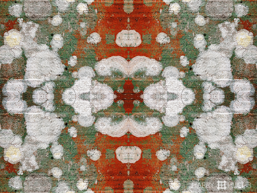 Algae Rorschach. Photo of algae on cement post, Finca Cantaros, San Vito, Costa Rica.