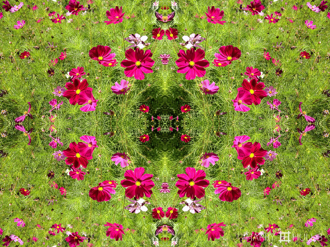 Flower galaxy. Photo of Cosmos flowers growing next to a sidewalk in Denver, Colorado.