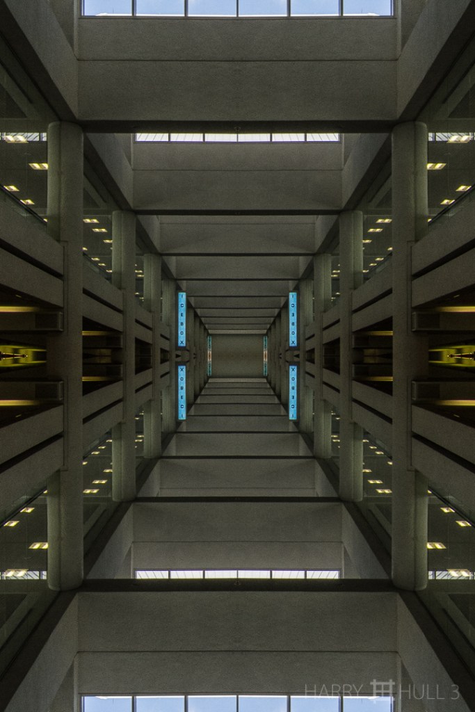 “ICEBOX”. Photo of skylights and upper levels of a corridor in the Miami International Airport terminal building, Florida.