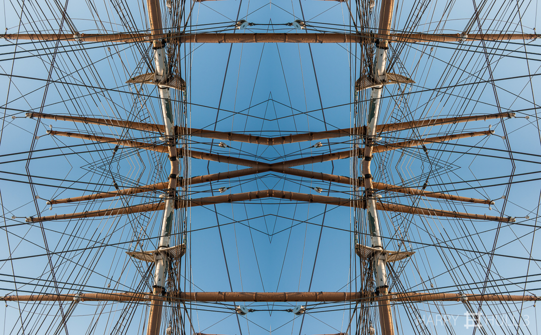 Rigging geometries. Photo of the rigging of the sailing vessel Balclutha at the San Francisco National Maritime Historical Park, San Francisco, California.