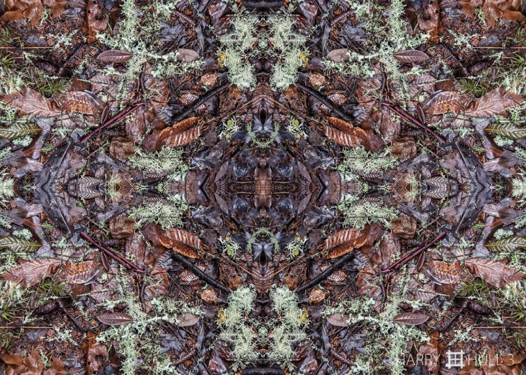 Forest floor. Photo of leaves, moss and pine needles after a winter rain in the forests of Mount Tamalpais State Park, California.