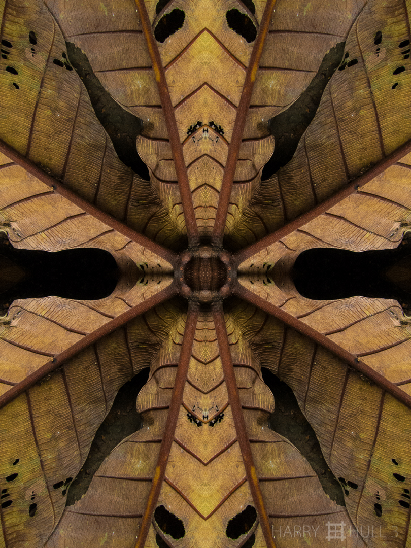 Topography of entropy. Photo close-up of dead Cepropia leaf on the forest floor, Mindo region, Ecuador.