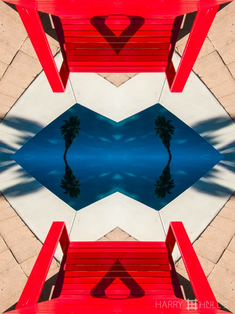 Pool furniture. Photo of an Adirondack chair near a swimming pool, northern California.