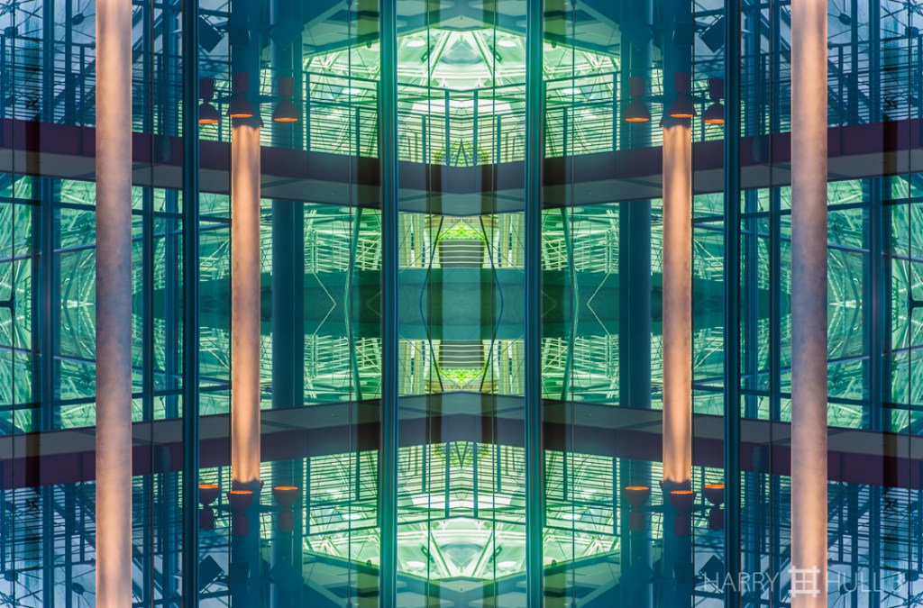Green architecture. Photo of part of the interior of the California Academy of Sciences building by Renzo Piano, taken from outside the main entrance, Golden Gate Park, San Francisco, California.