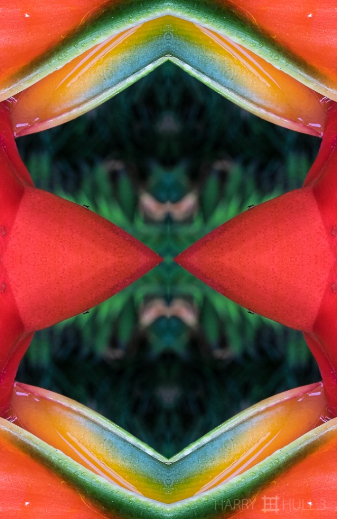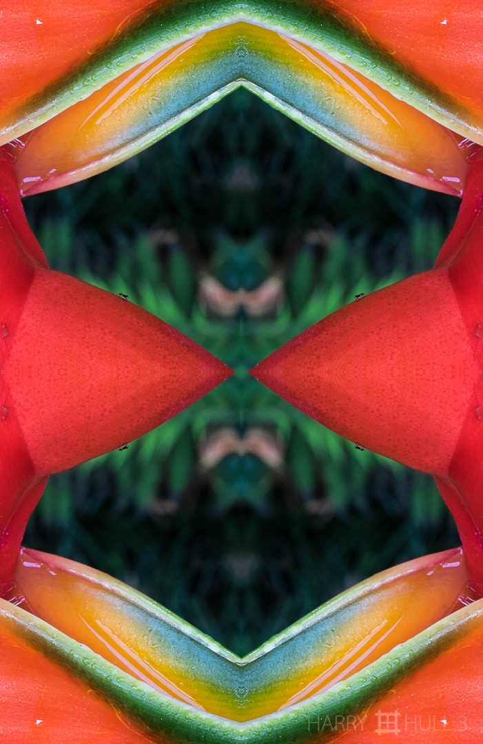 Power plant. Photo close-up of a Heliconia bract, with ant, Finca Cantaros, San Vito, Costa Rica.