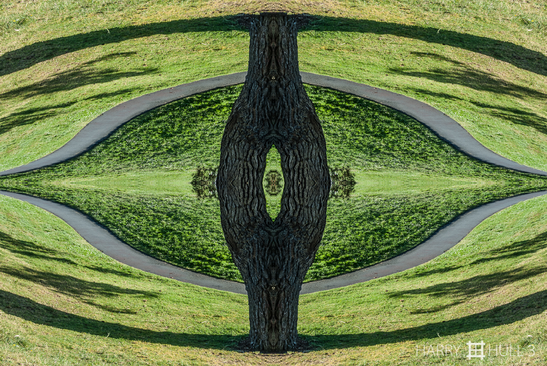 Path sentinel. Photo of pathway and tree in Fort Mason, Golden Gate National Recreation Area, San Francisco, California.