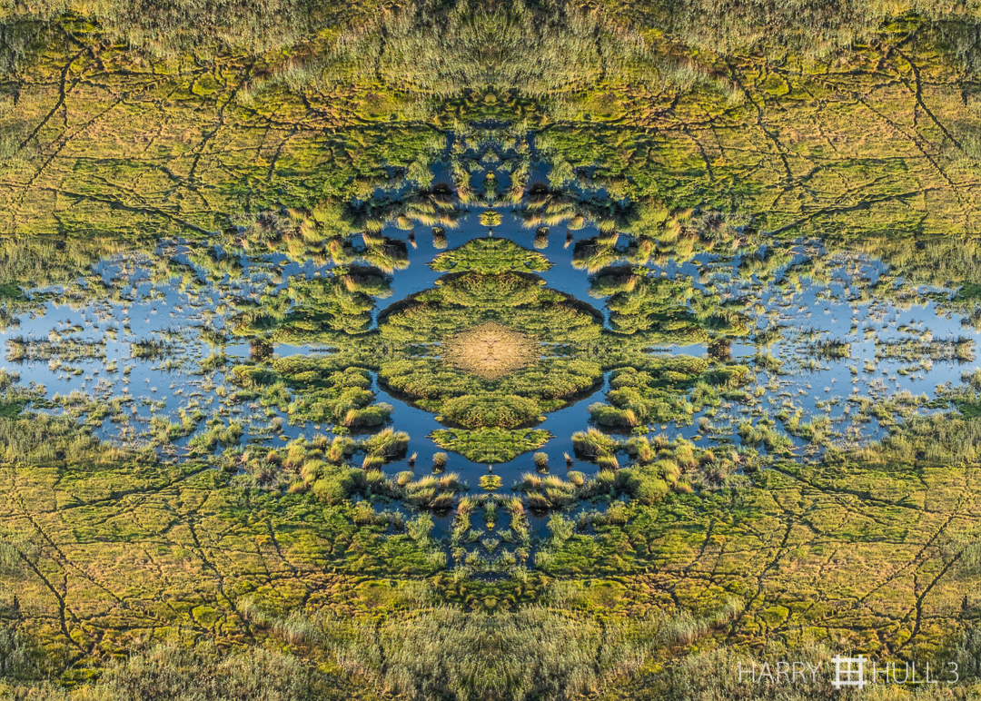 Marsh eye. Aerial photo of Okavango Delta near Linyanti Bush Camp, Botswana, Africa.
