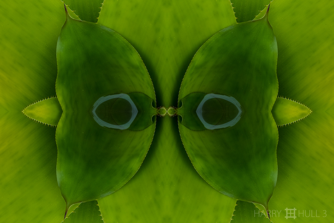 Incognito. Photo closeup of leaves around the watery tank of a bromeliad, Finca las Duenas, Coto Brus, Costa Rica.