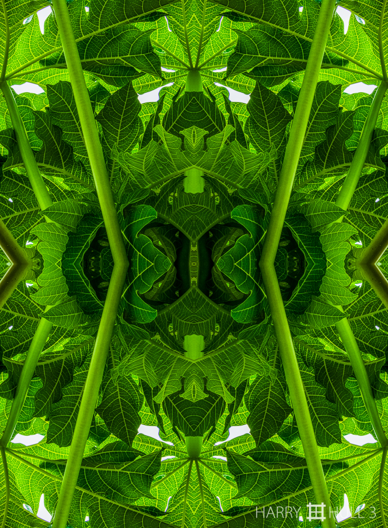 Leaf shelter. Photo of leaves in a young Papaya tree, Finca las Duenas, Coto Brus, Costa Rica.