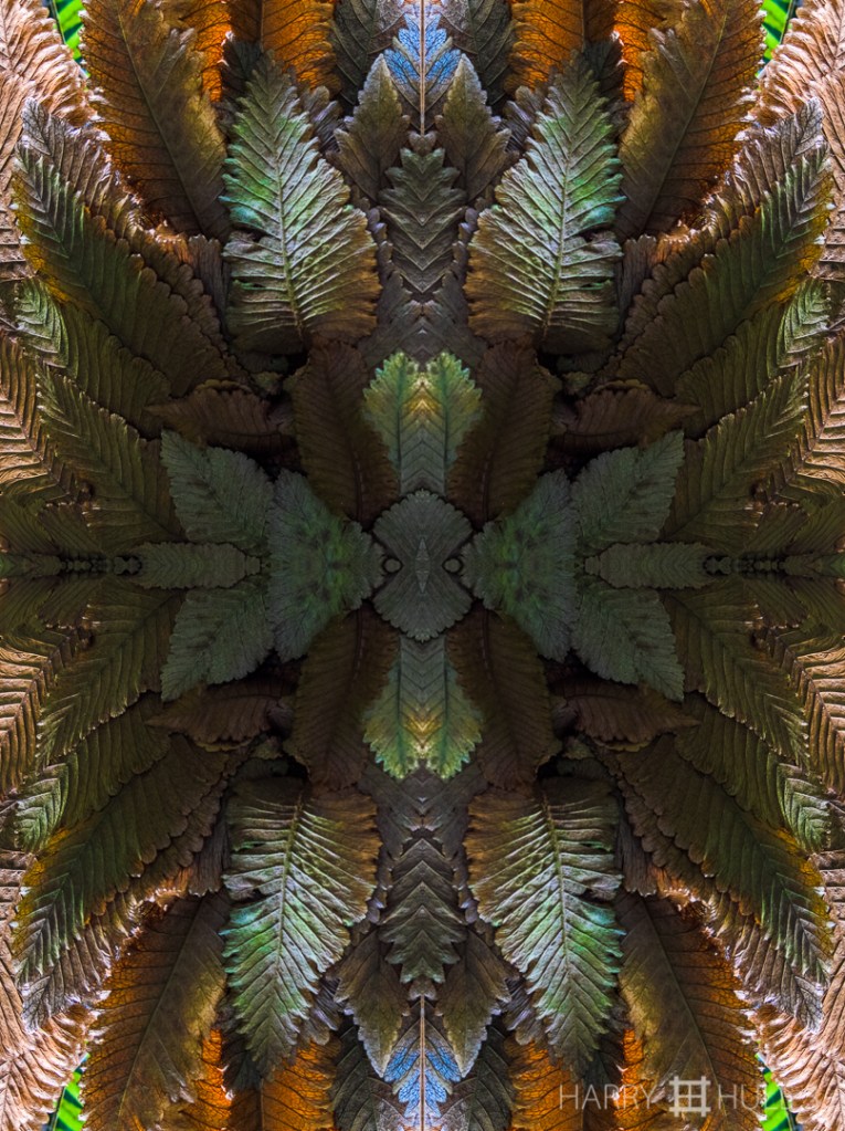 Fern shield. Photo close-up of an epiphytic fern (Basket Fern, Dyrnaria rididula) at the Hawaiian Tropical Botanical Garden, Big Island of Hawaii