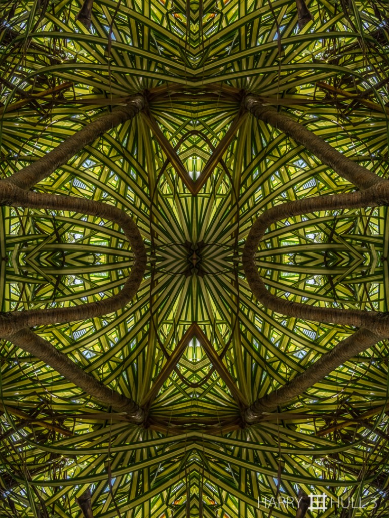 Pandanus canopy. Photo of Pandanus tree leaves and trunks, Playa Zancudo, Costa Rica.