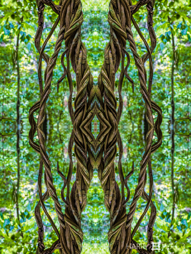 Vine entanglement. Photo of twisted vines hanging from a tree along the Ecclesdown Road, Drivers River valley, Jamaica.