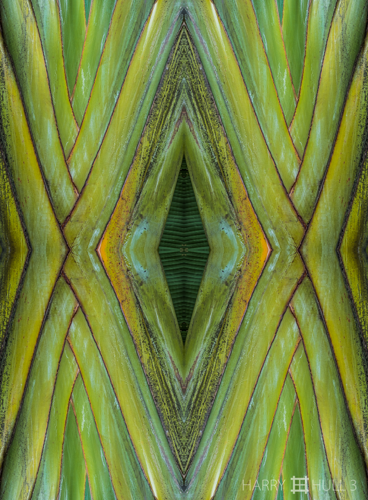 Palm opening. Photo of compact, overlapping petioles of a Travelers Palm, Ark Herb Farm & Botanical Garden, Heredia, Costa Rica.